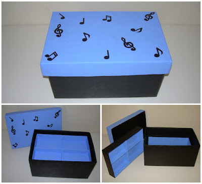 Materiais utilizados: Caixa de sapatos, cartão, jornal, cola e tinta.